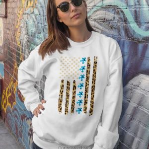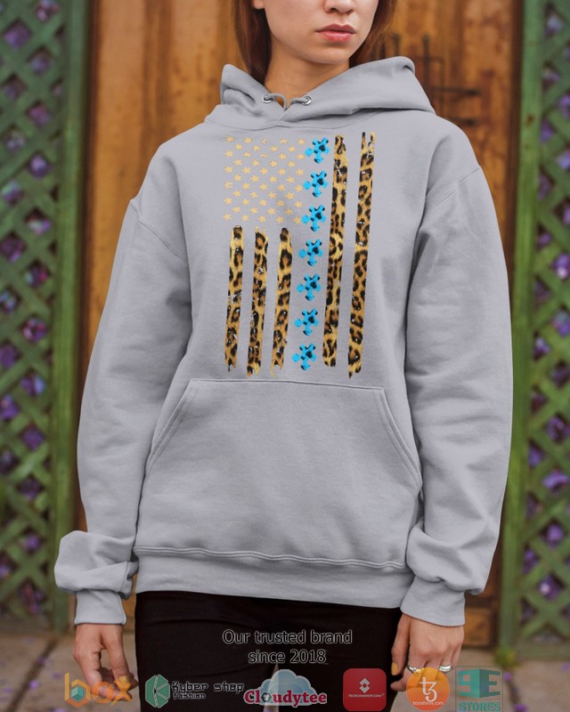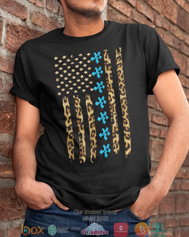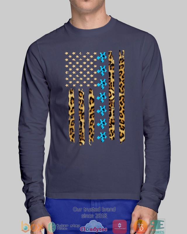 Autism Awareness Leopard Pattern Us Thin Line Flag Shirt, Hoodie