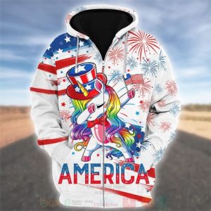 Flag Unicorn Cartoon Us Independence Day 3D Hoodie, Shirt