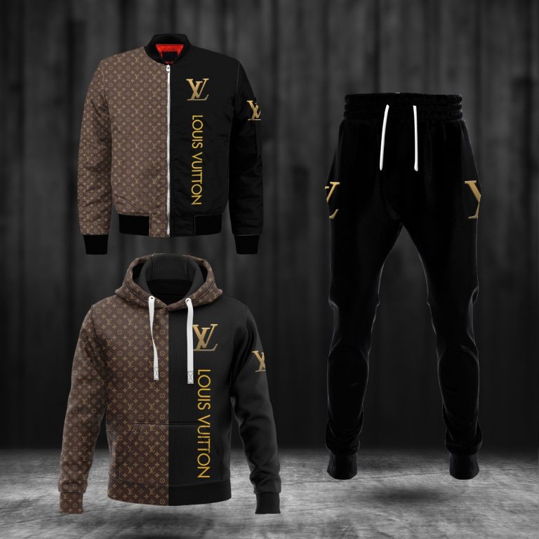 Louis Vuitton Brown Pattern Black Hoodie, Bomber Jacket