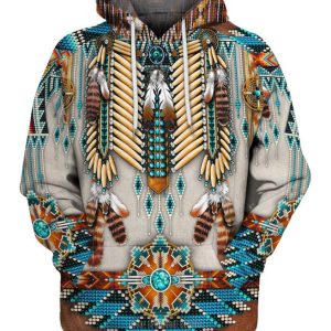 Native American Pattern Brown Grey 3D Hoodie
