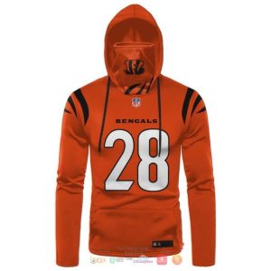 Nfl Cincinnati Bengals Mixon 28 Orange 3D Hoodie Mask