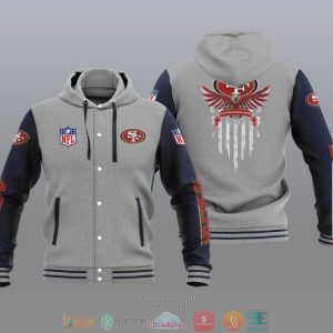 Nfl San Francisco 49Ers Eagle American Flag Baseball Jacket Hoodie