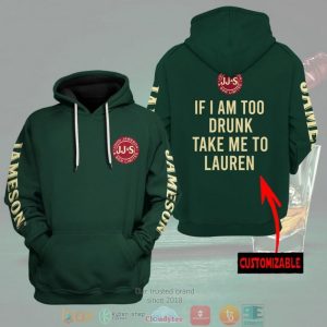 Personalized Jameson Irish Whiskey If I Am Too Drunk Take Me To Custom 3D Hoodie
