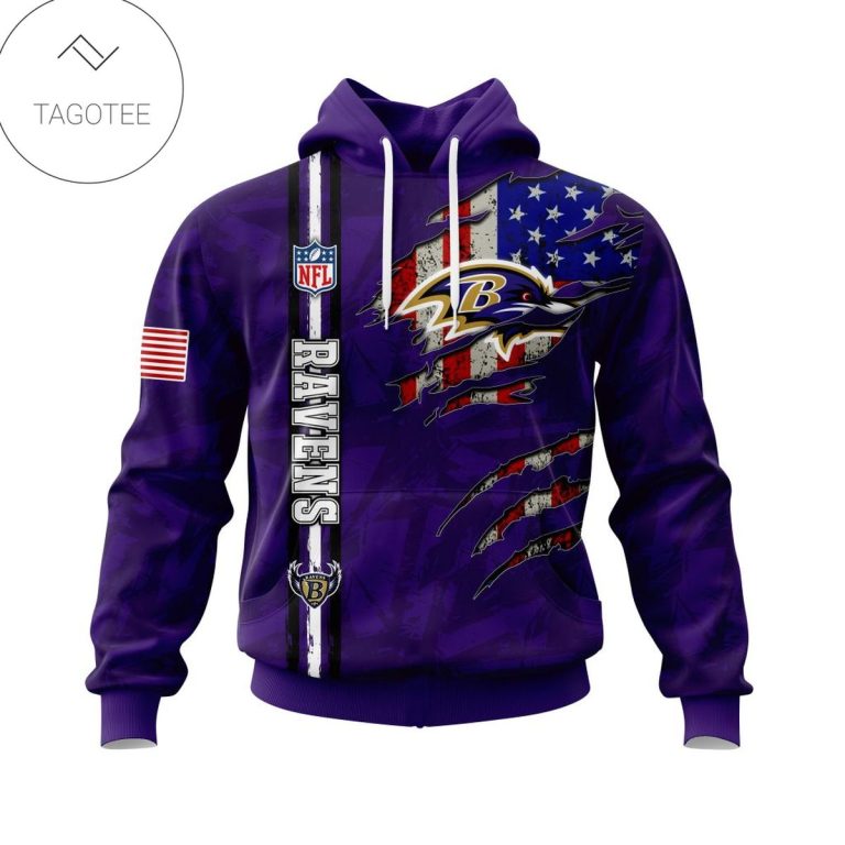 Personalized Nfl Baltimore Ravens Name & Number With United States Flag Hoodie