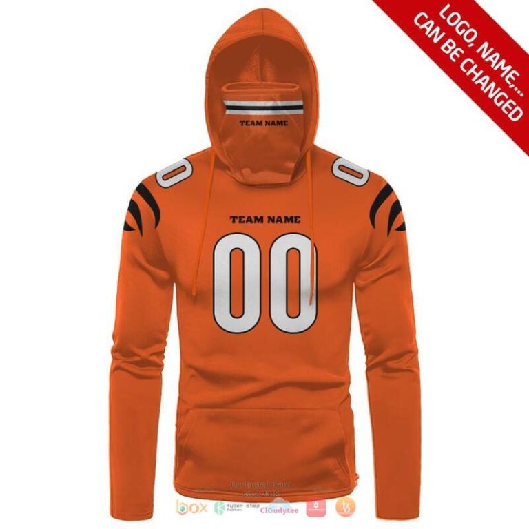 Personalized Nfl Cincinnati Bengals Orange Color 3D Hoodie Mask