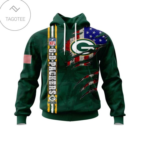 Personalized Nfl Green Bay Packers Name & Number With United States Flag Hoodie