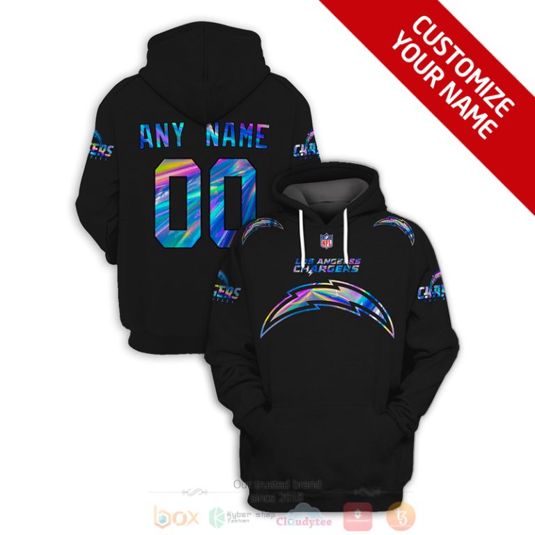 Personalized Nfl Los Angeles Chargers Black, Hologram Color 3D Hoodie, Shirt