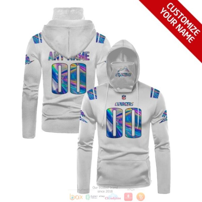 Personalized Nfl Los Angeles Chargers White Hologram Custom 3D Hoodie Mask