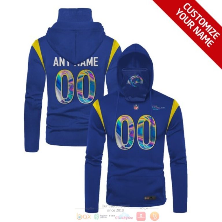 Personalized Nfl Los Angeles Rams Blue Hologram Custom 3D Hoodie Mask