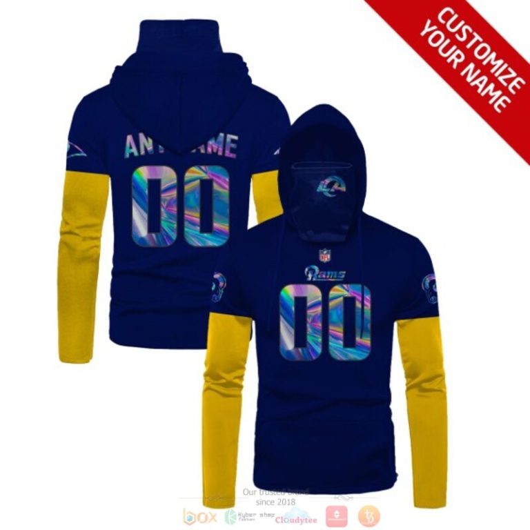 Personalized Nfl Los Angeles Rams Blue Yellow Custom 3D Hoodie Mask