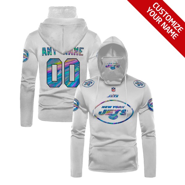 Personalized Nfl New York Jets White Hologram Color 3D Hoodie Mask