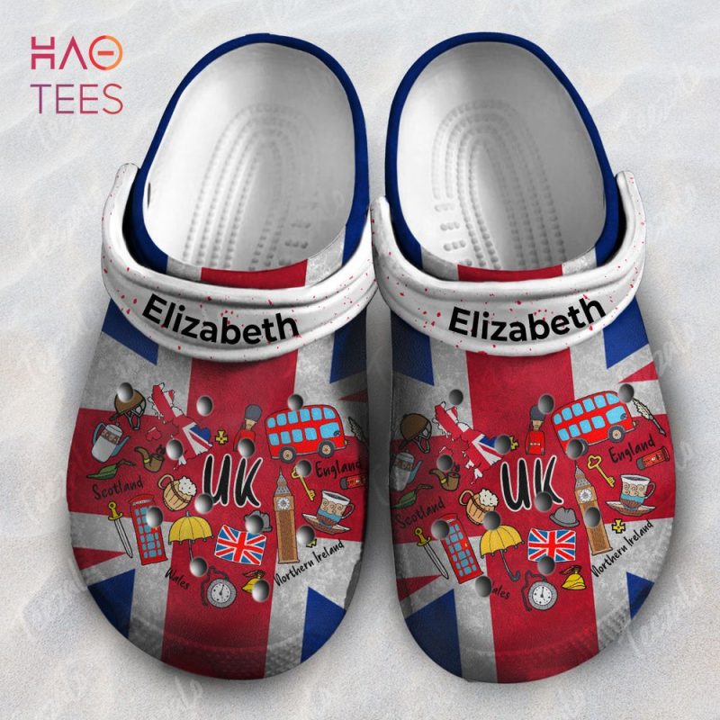 UK Flag Heart With Symbols Custom Your Name Crocs Shoes