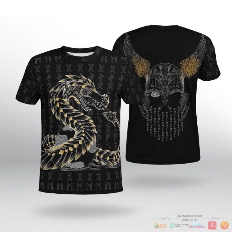 Viking Odin And Jormungandr Black 3D Shirt, Hoodie