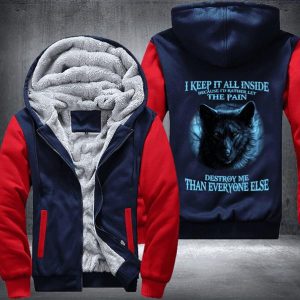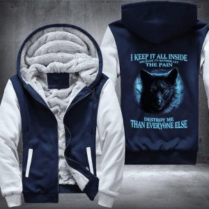 Wolf I Keep It All Inside Because I Would Rather Let The Pain Destroy Me Fleece Hoodie Jacket